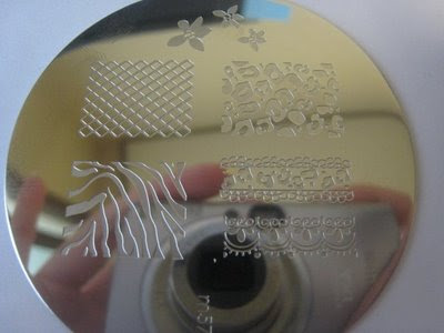 3. I will use the zebra print. Put black nail polish on the print and scrape it with the small knife that comes in the kit. Then, get it on your stamp.